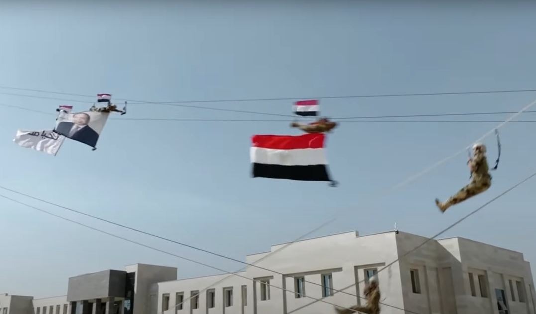 تزينت سماء الأكاديمية العسكرية المصرية بالطائرات الهليكوبتر وهي تحمل العلم المصرى، كما قام عدد من طلاب الأكاديمية الخريجين بعمل عرض مجسم للعلم المصري الذى تم رفعه منذ قليل على مقر الأكاديمية العسكرية المصرية إيذانا بافتتاحها.