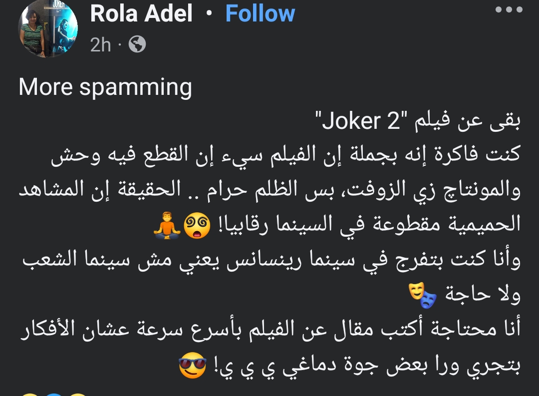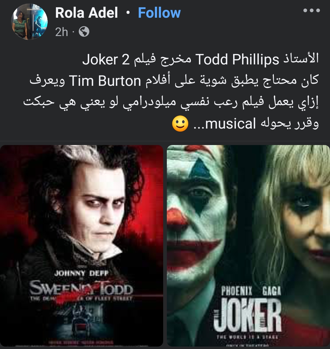 وفي سياق متصل، بدأ اليوم العرض الأول للجزء الثاني من فيلم Joker بطولة النجم العالمي خواكين فينيكس في دور العرض السينمائية بمصر ويعد الفيلم منتظر من قطاع كبير من الجماهير؛ بعد النجاح الجماهيري الهائل الذي حققه الجزء الأول عند عرضه في 2019، ومن المقرر أيضا أن يطرح الجزء الثاني في دور العرض الأمريكية في 4 أكتوبر الجاري .