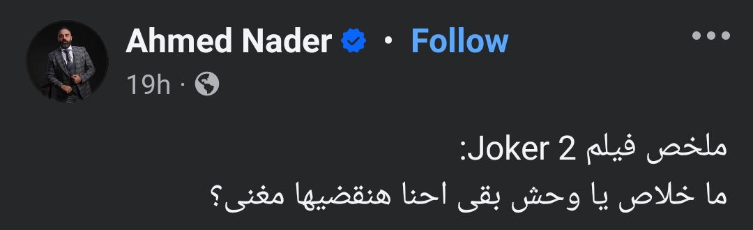 وأضاف: "الفيلم الأول حقق نجاح كبير جدا طبعا، ولكن في الفيلم الجديد هيبقى صادم لعدة مستويات، أولا مفيهوش أكشن، والشخصية بتاعت الجوكر مختلفة عن الجزء الأول خالص أقل حيوية وأقل حياة بكثير عن الجزء الأول".