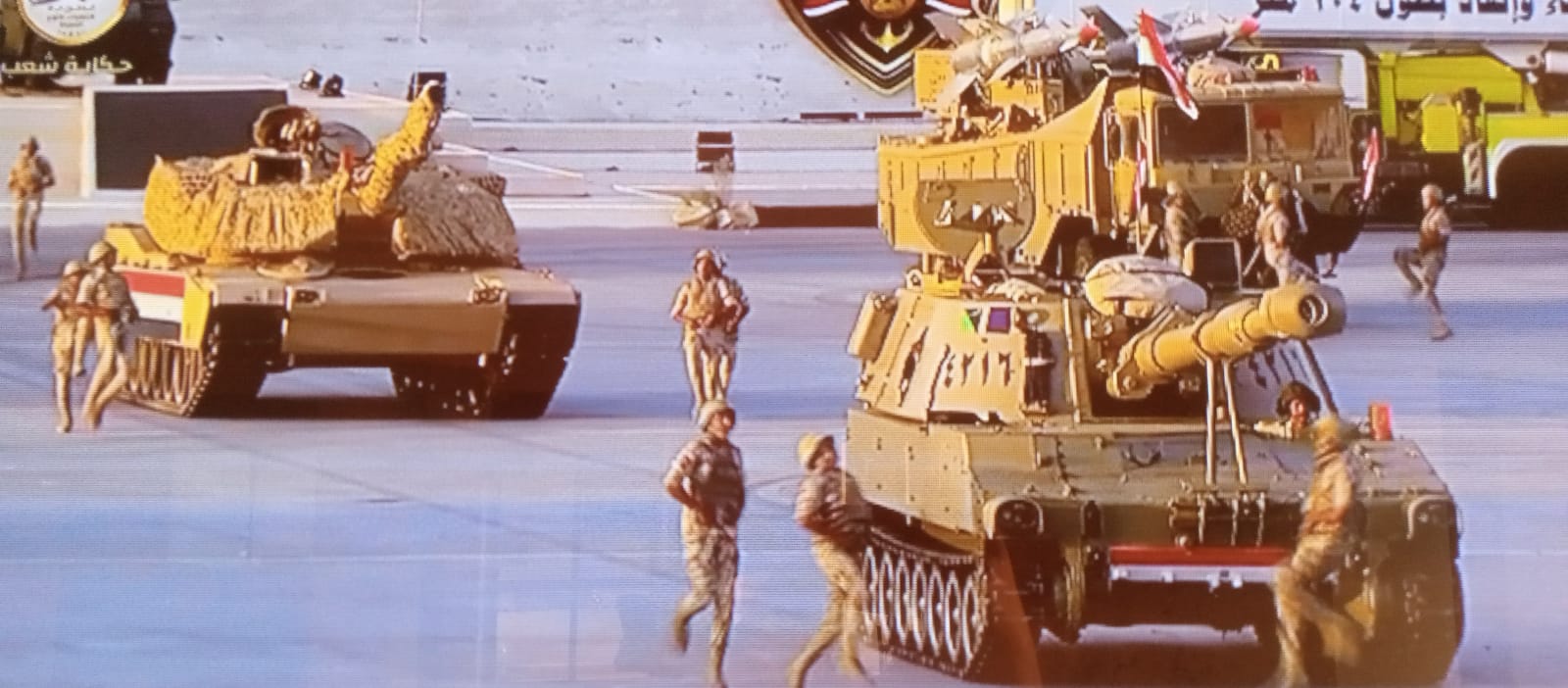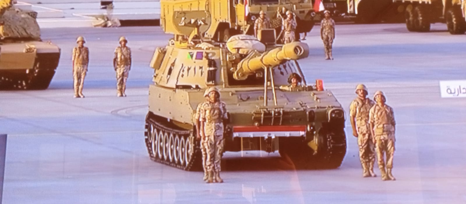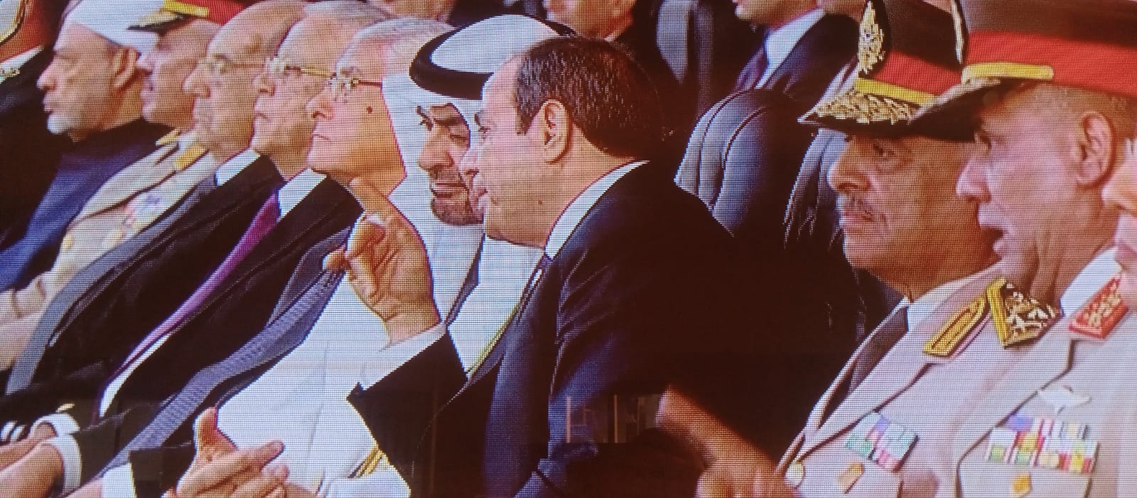 الرئيس السيسي وبن زايد يشهدان عرض قوات المشاة والمدفعية والحرب الإلكترونية