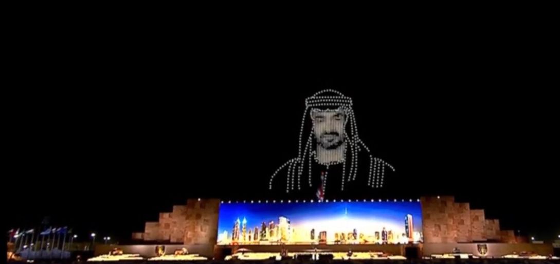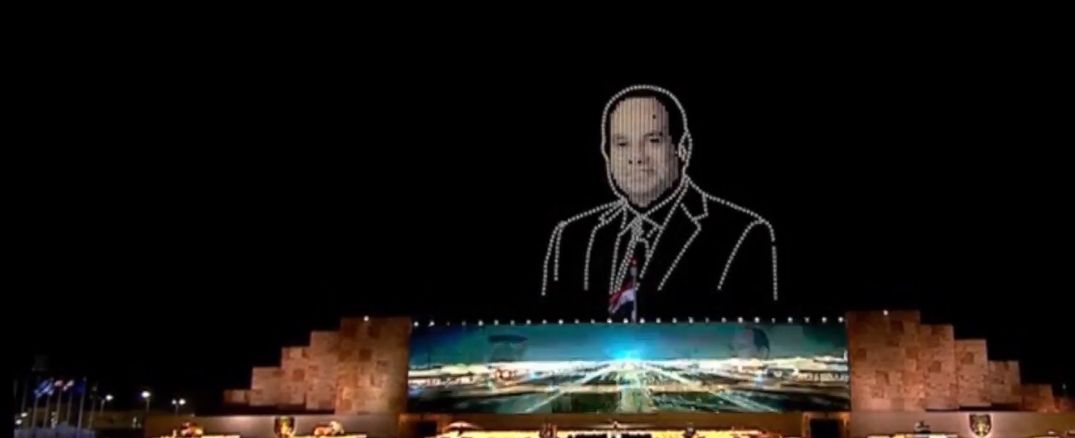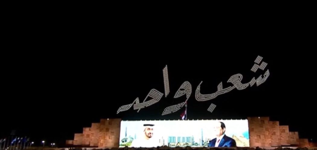 زينت صورتي الرئيسان عبدالفتاح السيسي والشيخ محمد بن زايد رئيس دولة الإمارات العربية الشقيقة، سماء الأكاديمية العسكرية، حيث قدم طلاب الأكاديمية لوحات فنية للزعيمان ولوحة تحمل شعار "شعب واحد" خلال حفل تخرجهم من الكليات العسكرية بالعاصمة الإدارية الجديدة.