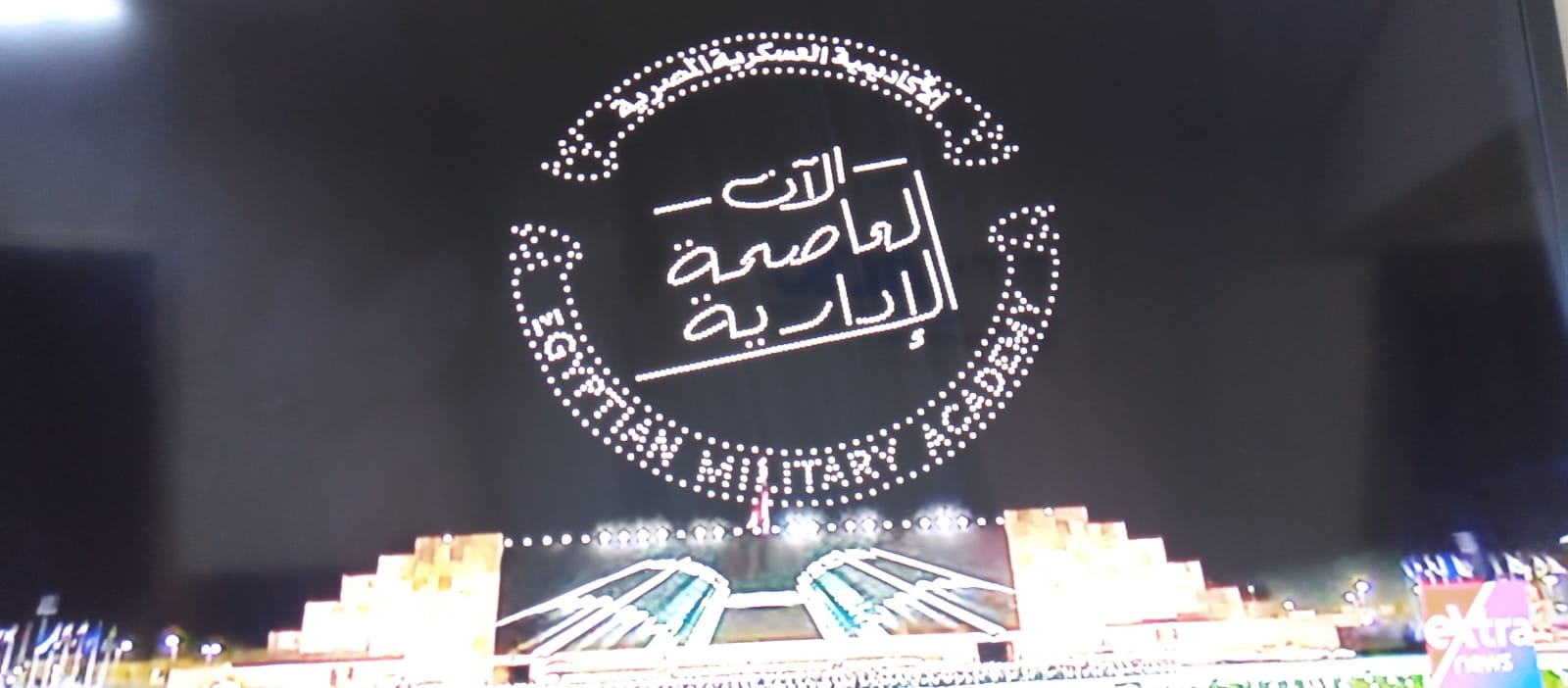 وقامت طائرات الدرون برسم مختلف شعارات الكلية الحربية منذ تأسيسها وحتى الآن .