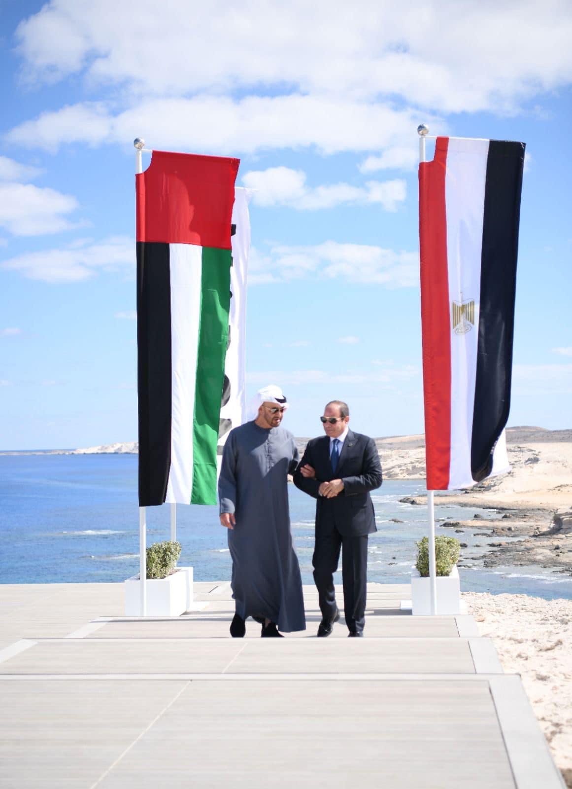 شهد الرئيس عبدالفتاح السيسي، والشيخ محمد بن زايد آل نهيان رئيس دولة الإمارات، اليوم الجمعة، إطلاق مشروع رأس الحكمة التنموي، بحضور الدكتور مصطفى مدبولي، رئيس مجلس الوزراء، بالإضافة إلى عدد من كبار رجال الأعمال من الجانبين المصري والإماراتي.