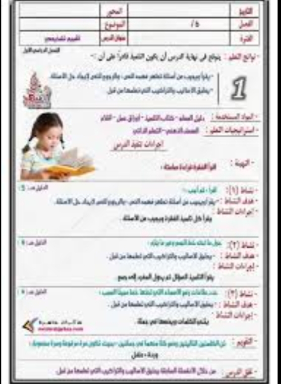 نماذج دفتر تحضير عربي للصف السادس الابتدائي الترم الأول 2024