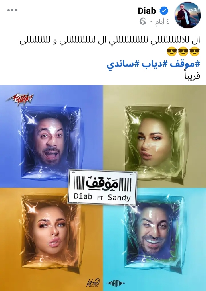وقام الفنان محمد دياب في الفترة الماضية بترويج، لعمل فني جديد يجمعه بالفنانة ساندي للمرة الأولى، من خلال منشور طريف عبر حسباتهما الرسمية بمواقع التواصل الاجتماعي.