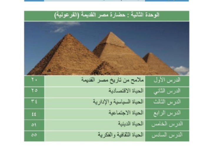الوحدة الثانية: حضارة مصر القديمة (الفرعونية)