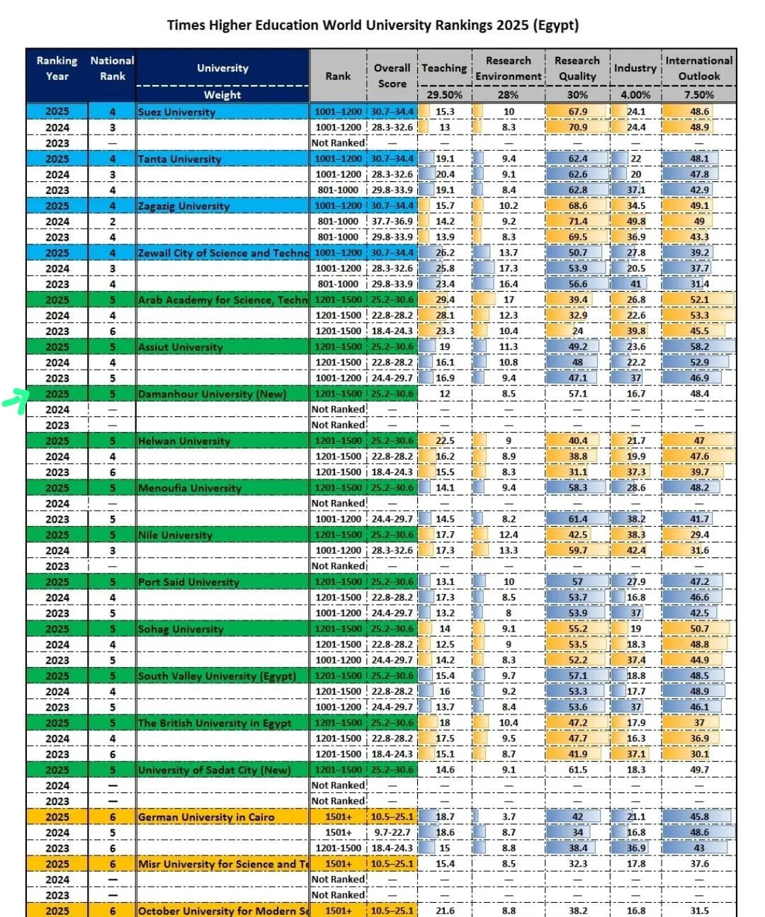 لأول مرة.. إدراج جامعة دمنهور ضمن تصنيف التايمز HE العالمي 2025