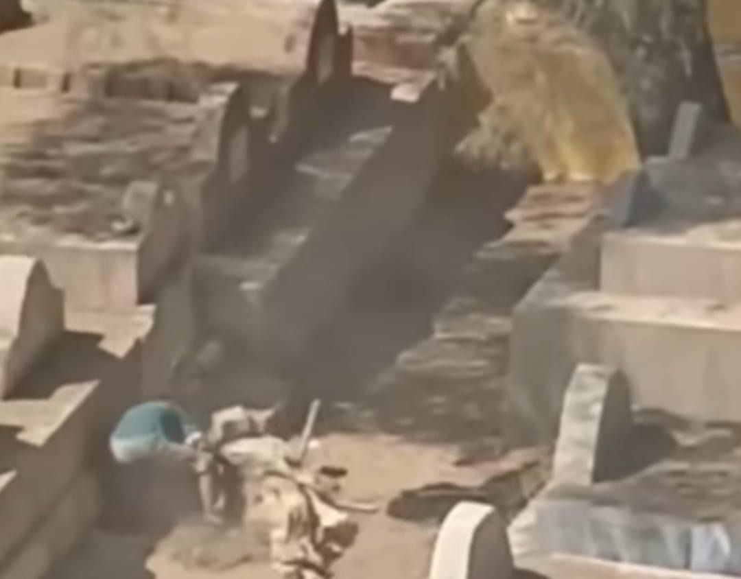 تداول رواد مواقع التواصل الاجتماعي فيس بوك تداولوا مقطع فيديو لشخص يستخرج بعض العظام من مقابر مصلح بدائرة الخانكة في محافظة القليوبية.