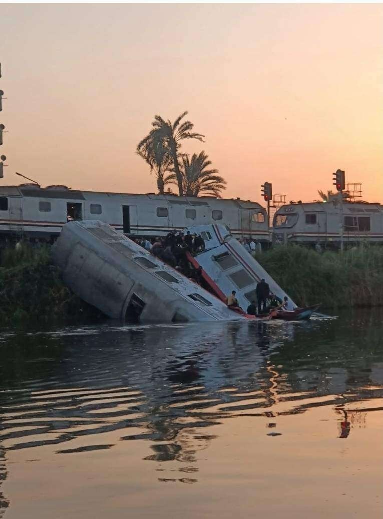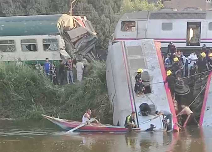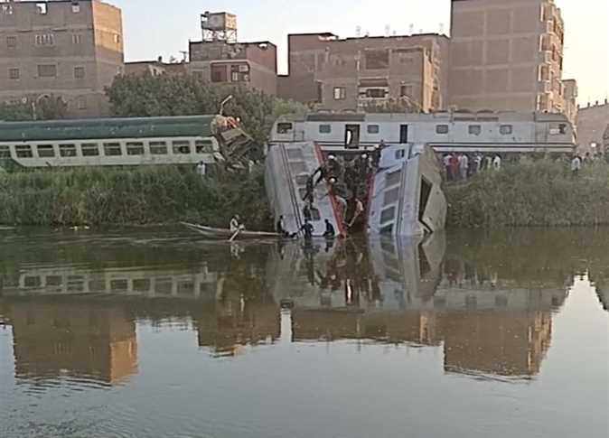 وأظهرت صور متداولة فرق الحماية المدنية وهي تحاول إنقاذ الركاب، وبحسب مصادر بقطاع السكك الحديدية، فإن الجهود جارية لانتشال العربات الغارقة من القناة.