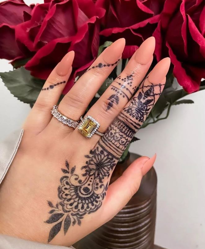 تعطي نقش حناء اصابع أنوثة خفيفة ونقشها تختلف حسب اللون والشكل. في ما يتعلّق بالألوان، فالخيار يعود لكِ و الحناء على الأصابع تبرز عند ارتداء المجوهرات مثل الخواتم والأساور، مما يعزز من جمال اليدين إليك بعض رسومات نقش الحنة على الاصابع.