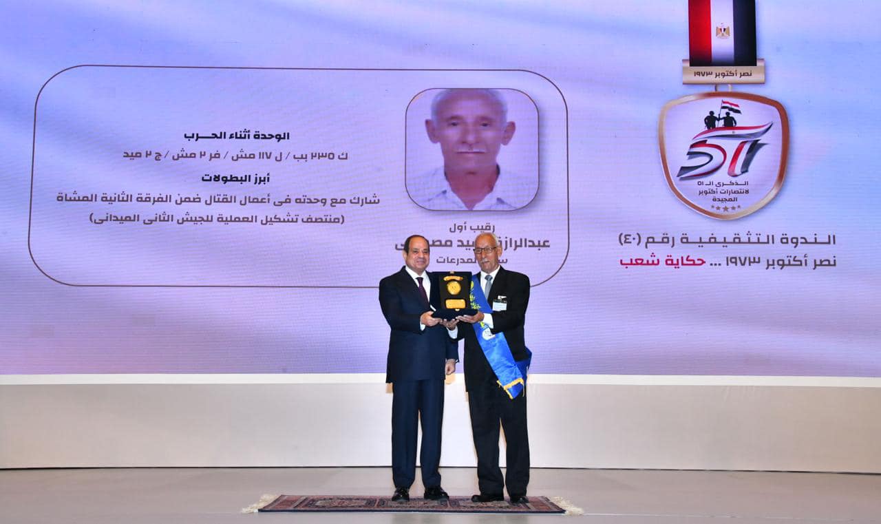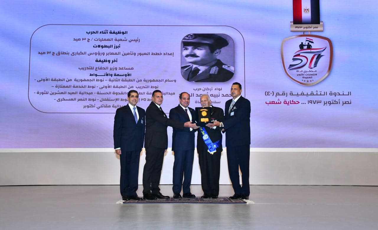وخلال الاحتفالية كرم الرئيس السيسي عددا من أبطال حرب أكتوبر المجيد، كما ألقى الرئيس عبد الفتاح السيسي كلمة فى الندوة التثقيفية بمناسبة الذكرى الـ"51" لنصر حرب أكتوبر المجيدة، جاء نصها كالآتي: