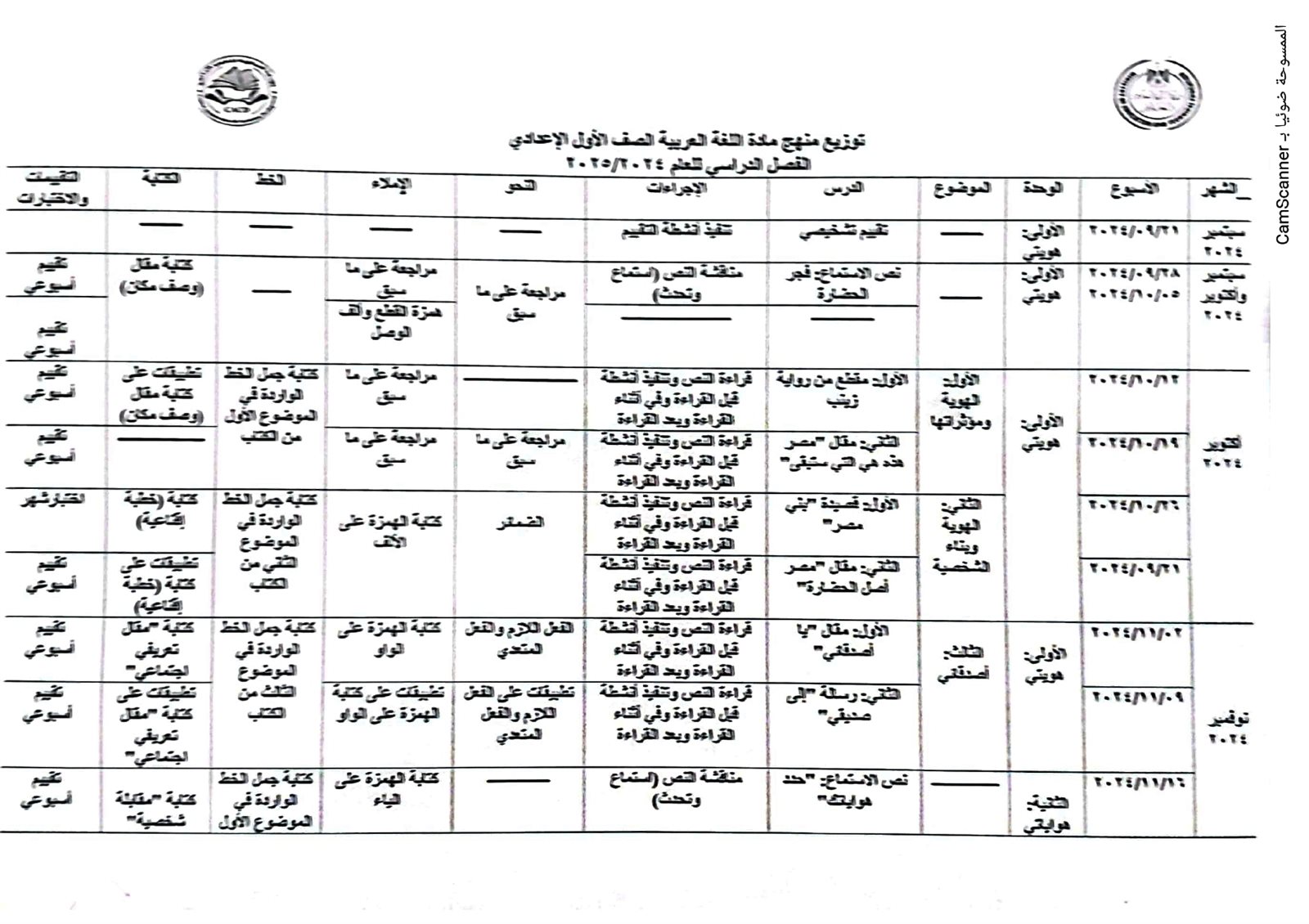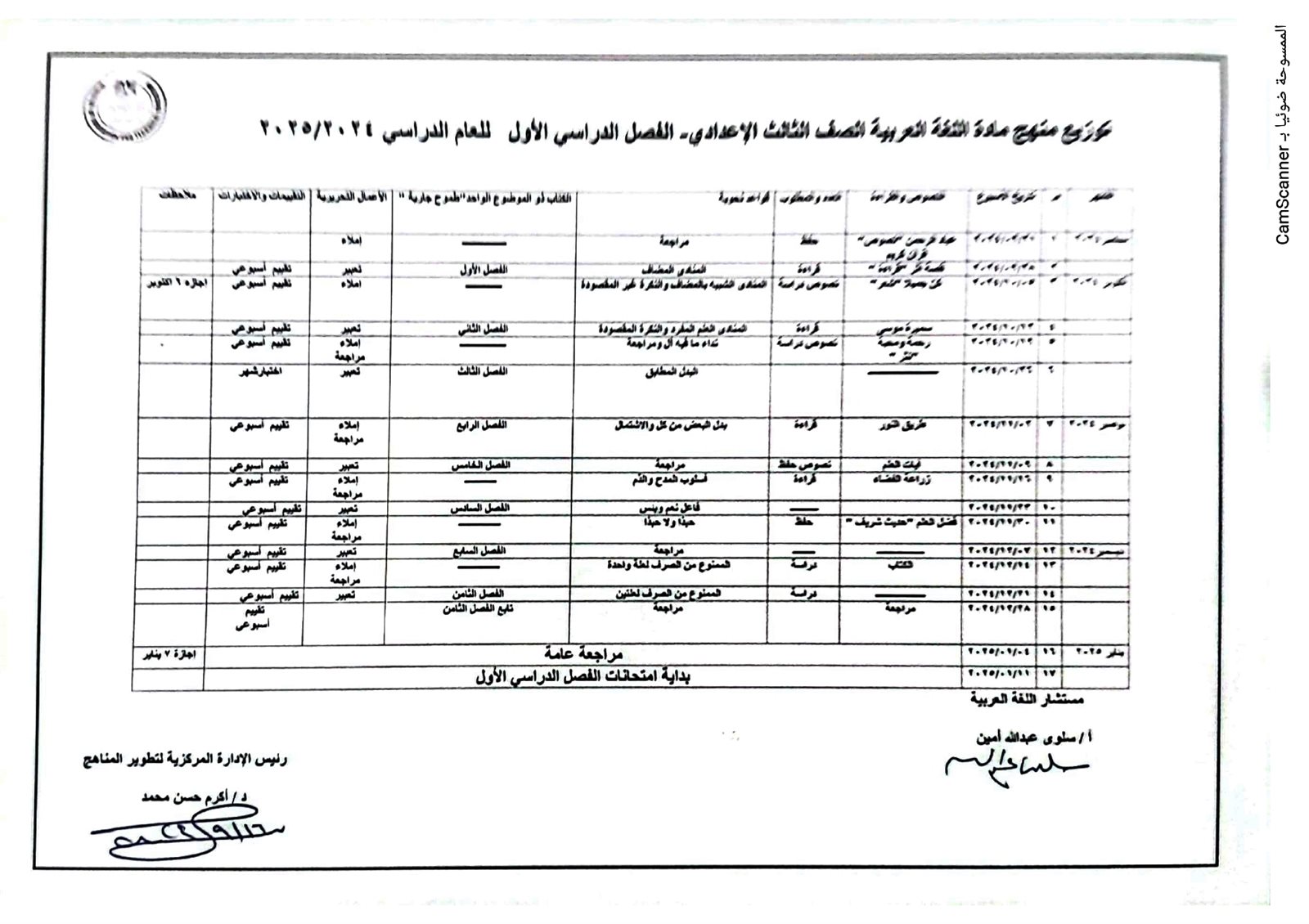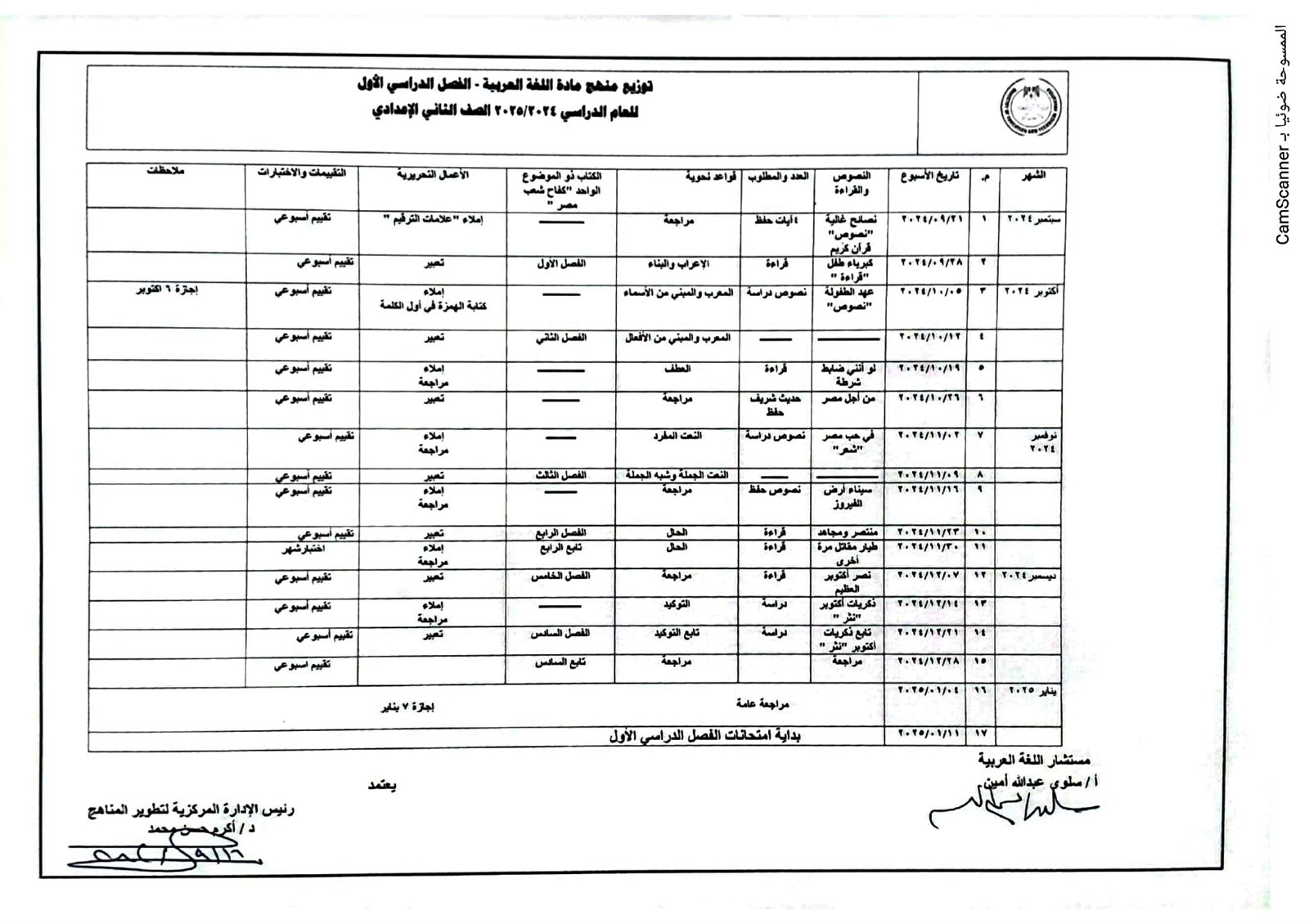توزيع منهج اللغة العربية للمرحلة الإعدادية 2025