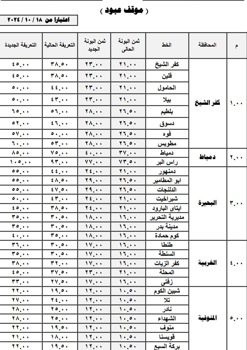 إلى ذلك أعلنت محافظة الغربية عن تحديث تعريفة ركوب سيارات السرفيس، والنقل العام، والتاكسي، استجابةً لقرار تعديل أسعار الوقود، بما يتماشى مع الأسعار العالمية. وأكدت المحافظة أن التعديل تم بشكل مدروس لتحقيق التوازن بين حقوق السائقين وقدرة الركاب على تحمل التكاليف.
