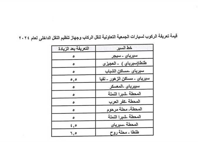 أسعار المواصلات الجديدة في محافظة الغربية 2024