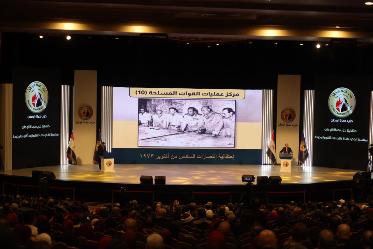 نظم حزب حماة الوطن، احتفالية بمناسبة الذكرى الـ50 لانتصارات أكتوبر المجيدة، بمركز المنارة للمؤتمرات الدولية.