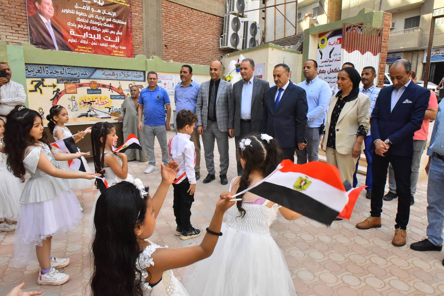 واستكمل المحافظ- جولته- بتفقد بعض الفصول الدراسية لصفوف الإبتدائية وأوصى التلاميذ بضرورة بذل المزيد من الجهد والعطاء في تحصيل دروسهم والتسلح بالعلم لكونه من أقوي الدعائم لبناء الوطن ورفعته متمنياً لهم التوفيق والنجاح وشاهد انتظام الدراسة بها وتحاور مع الطلاب واستمع إلى آرائهم ومشاركتهم مع المعلمين موضحاً أهمية المشاركة ولغة الحوار والفهم والسؤال والاستجواب موجهاً لهم الشكر على تميزهم، كما تفقد معمل الحاسب الآلى، والمكتبة، واستمع إلى شرح من مدير المدرسة الذى أوضح بأن الفصول الدراسية بالمدرسة وعددهم ١٥ فصل دراسي للصفوف المختلفة بالمرحلة الإبتدائية وتصل كثافة كل فصل منهم حوالي ٤٥ طالب/ طالبة بإجمالي عدد الطلاب بالمدرسة ٩٠٨ طالب/ طالبة خلال العام الدراسي الجاري.