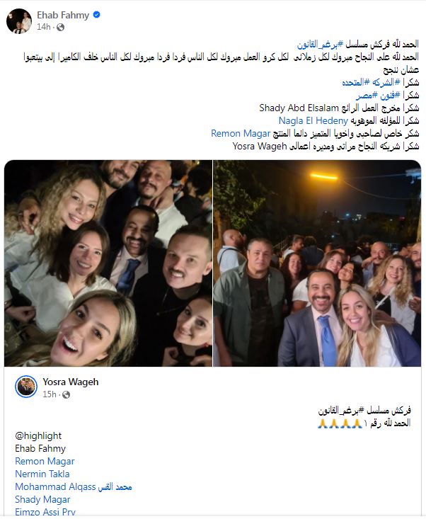 وشارك فهمي صور من كواليس انتهاء التصوير ووجه الشكر لزوجته وعلق على الصور قائلا : "الحمد لله فركش مسلسل برغم القانون الحمد لله على النجاح مبروك لكل زملائى لكل كرو العمل مبروك لكل الناس فردا فردا مبروك لكل الناس خلف الكاميرا إلى بيتعبوا عشان ننجح "