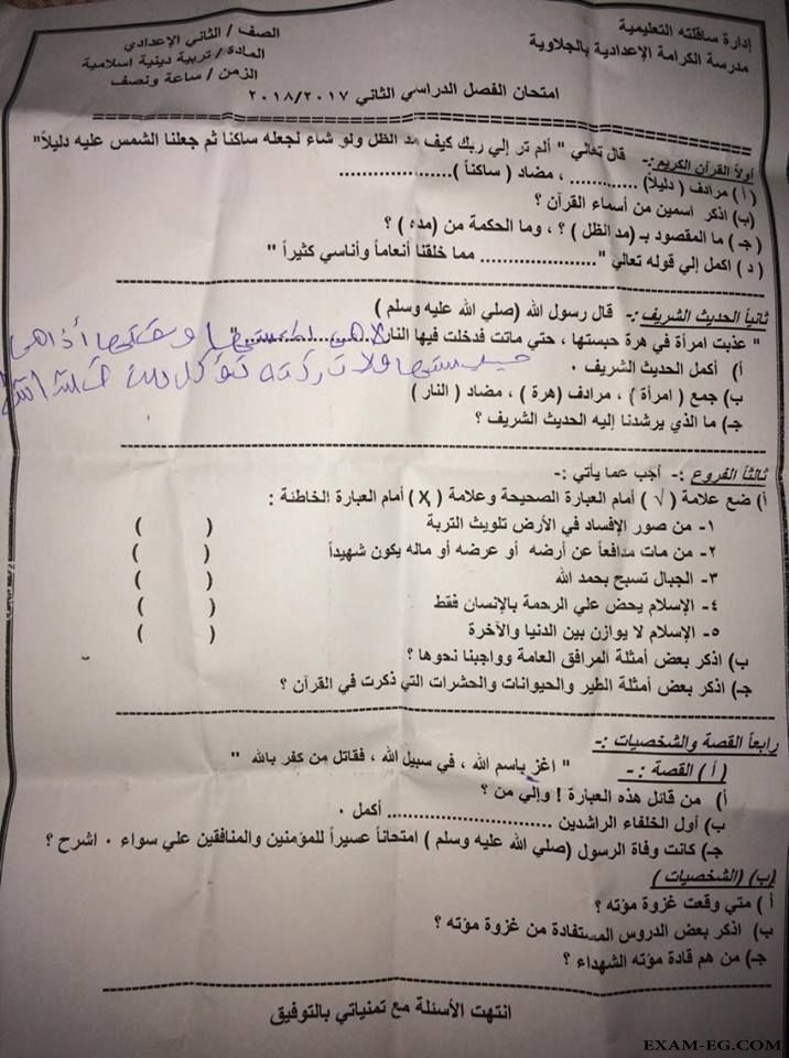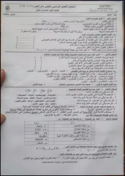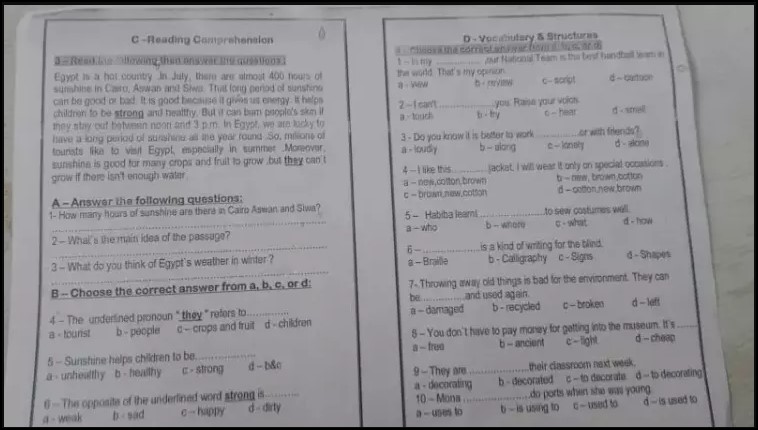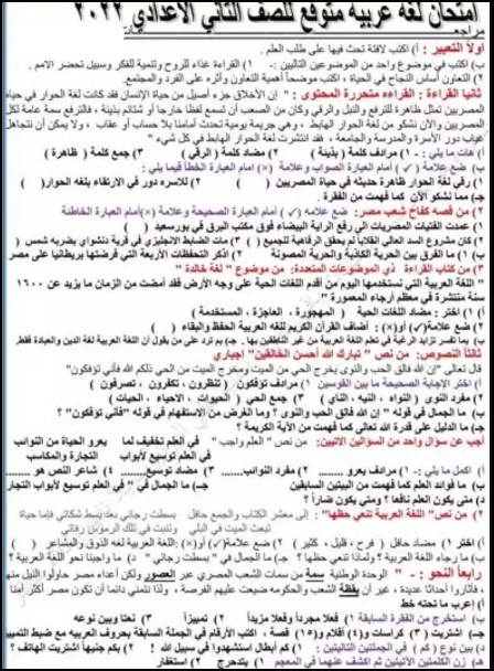 نماذج امتحانات الصف الثاني الاعدادي pdf