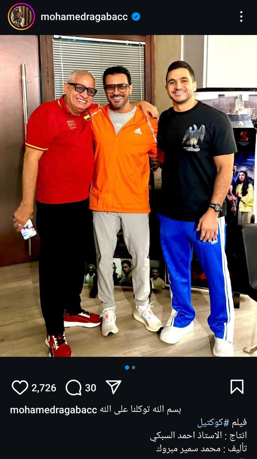 نشر محمد رجب صورة له تجمعه مع المنتج أحمد السبكي على صفحته الرسمية عبر موقع تبادل الصور والفيديوهات "إنستجرام" وعلق قائلا : "بسم الله توكلنا على الله، فيلم كوكتيل، إنتاج الأستاذ أحمد السبكي، تأليف محمد سمير مبروك" .