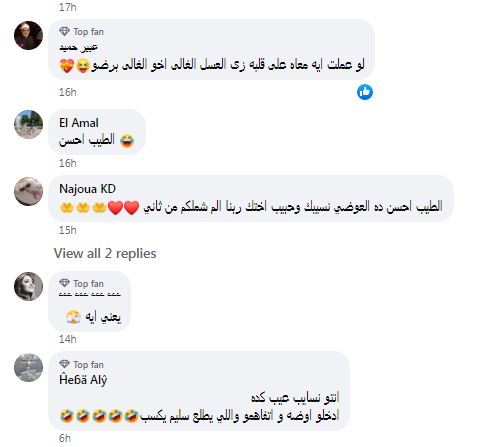 مما نالت إعجاب متابعيه شقيق النجمة وجاءت التعليقات كالآتي " الطيب احسن ده العوضي نسيبك وحبيب اختك ربنا الم شملكم من ثاني ، لو عملت ايه معاه على قلبه زى العسل الغالى اخو الغالى برضو".
