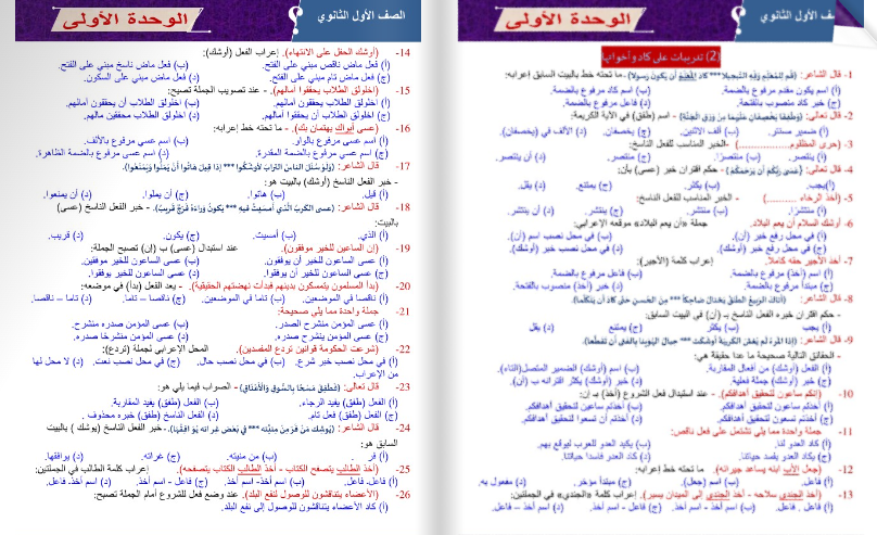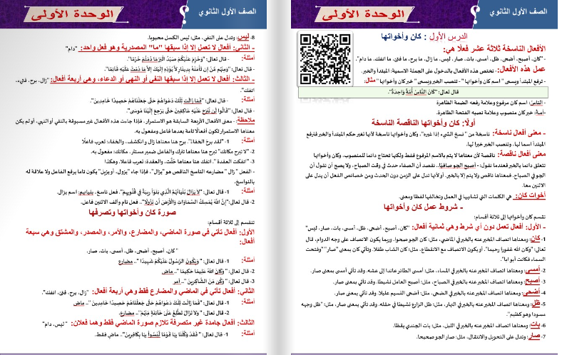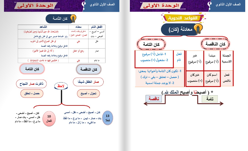 - النحو: كان الناقصة والتامة – أفعال المقارنة والرجاء والشروع.