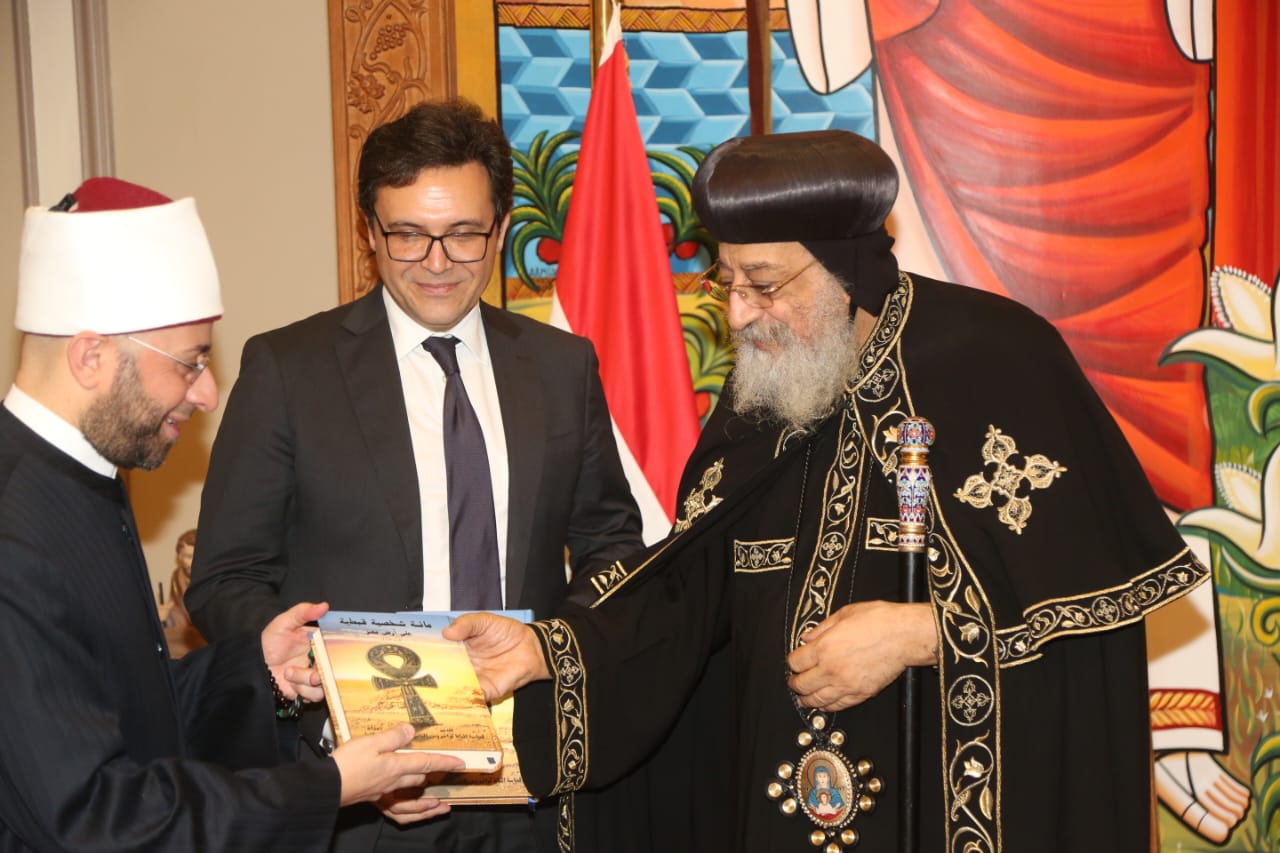 ومن جهته، أهدى البابا تواضرس كتاب "مائة شخصية قبطية على أرض مصر" لوزيري الثقافة والأوقاف.