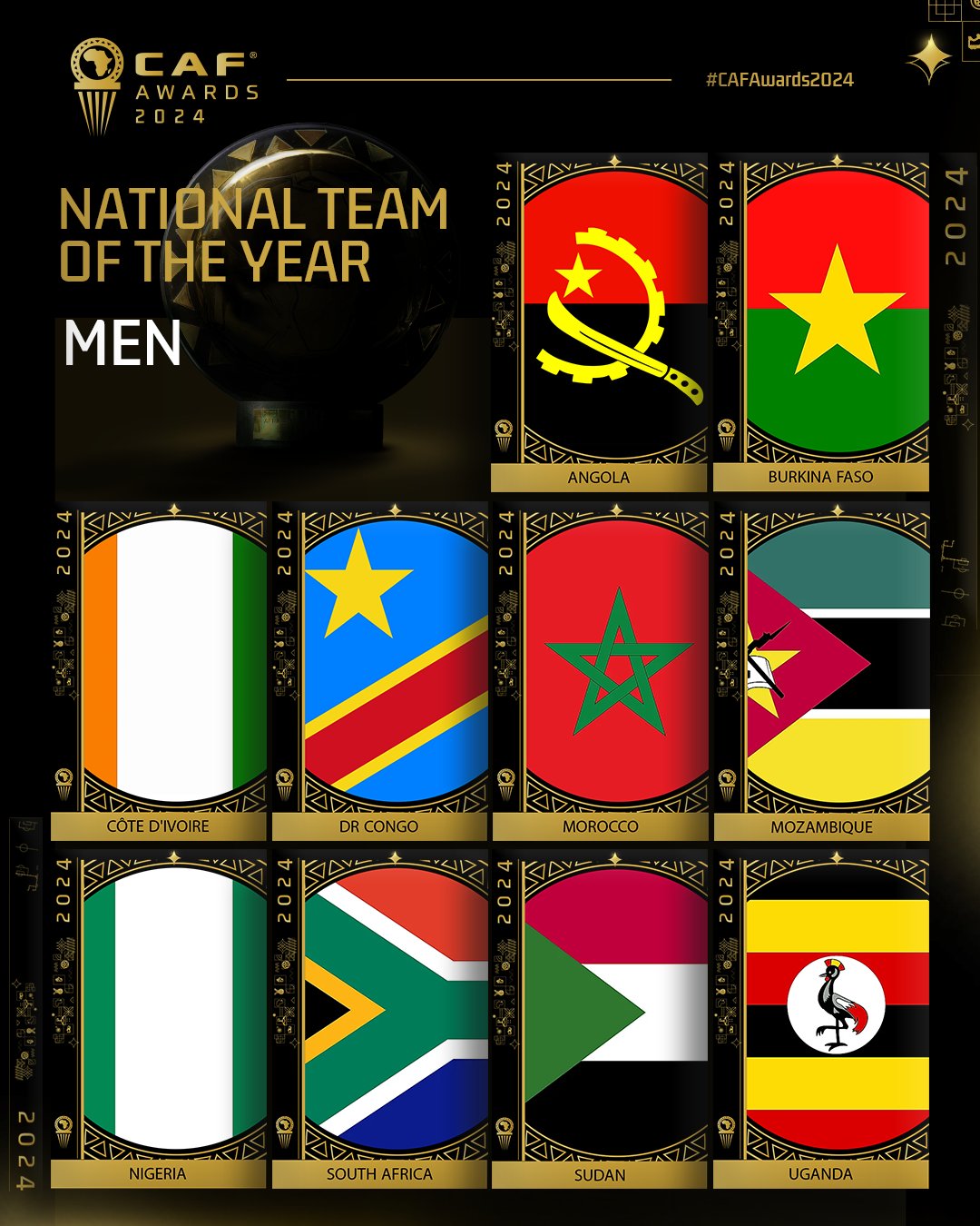 أعلن الاتحاد الأفريقي لكرة القدم " كاف " قائمة المنتخبات المرشحة للقب أفضل منتخب أفريقي عن عام 2024، وسيتم الكشف عن إسم الفائز في جوائز كاف خلال الحفل السنوي الذي سيقام في المغرب يوم 16 ديسمبر المقبل في مدينة مراكش المغربية.