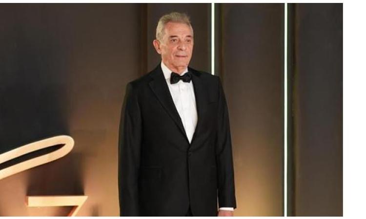 محمود حميدة: تألق الفنان ببدلة سوداء أنيقة، تنسيقها مع قميص أبيض وبنطلون بنفس اللون.