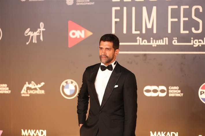 أحمد مجدي: اختار بدلة سوداء، وقام بتنسيقها مع قميص أبيض ورابطة عنق سوداء.