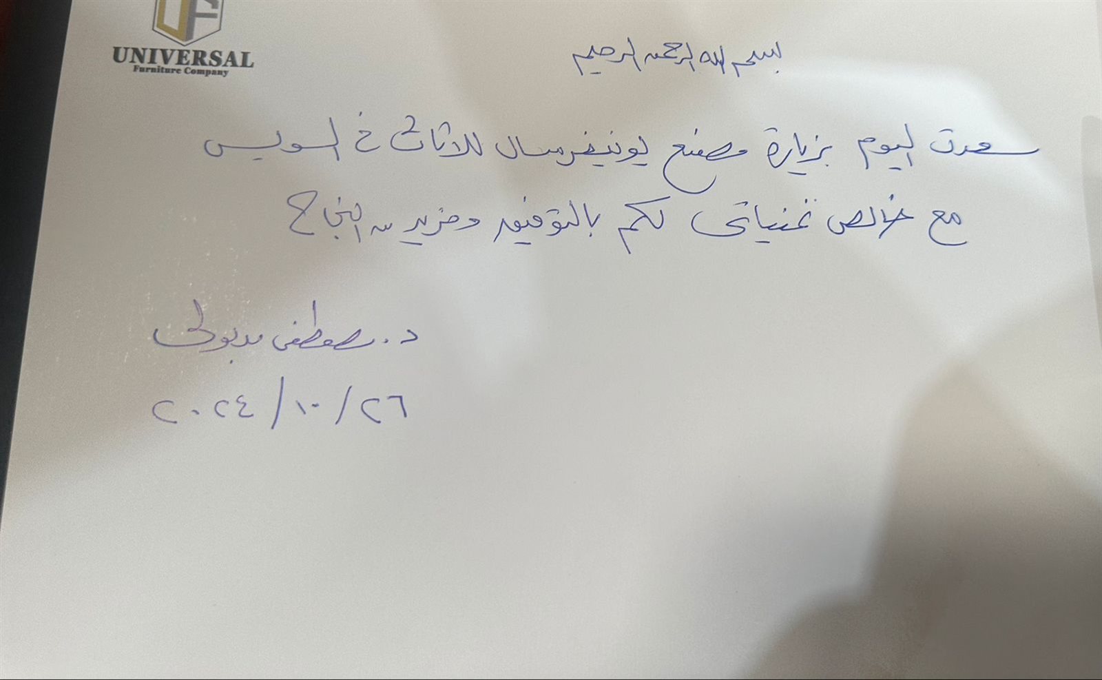 حرص الدكتور مصطفى مدبولى، رئيس الوزراء على تسجيل كلمة فى سجل الزيارات لمصنع يونيفرسال للأثاث بمحافظة السويس، وهو مصنع استثمارات سعودية على أرض المحافظة.