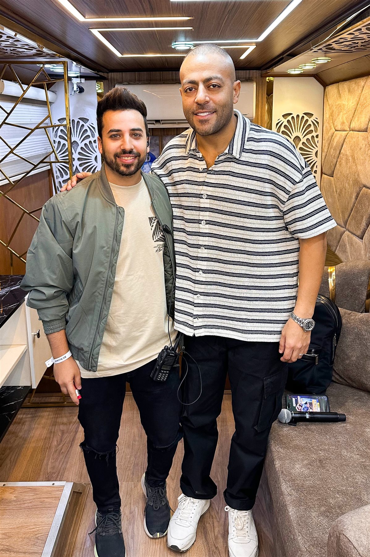 حضر تامر عاشور الحفل بكامل اناقته مرتديا ملابس "كاجوال" بصحبة شقيقة ومدير أعمالة وكان في استقبالهما أدهم بكري منظم الحفل.
