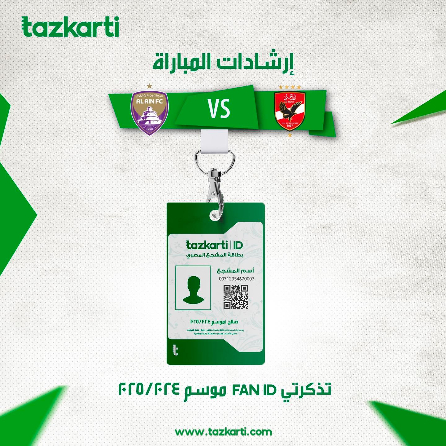 طالبت شركة "تذكرتي" جميع الجماهير بالتأكد من استلام تذكرتي Fan ID الخاصة بموسم ٢٠٢٤-٢٠٢٥ للتمكن من حضور مباراة "النادي الأهلي ونادي العين الإماراتي"، ونشرت الشكرة رابطًا لاستلام التذكرة وتذكرتي Fan ID: للدخول إلى الرابط اضغط هنــــا أو الاتصال عبر رقم الخط الساحن 15355.