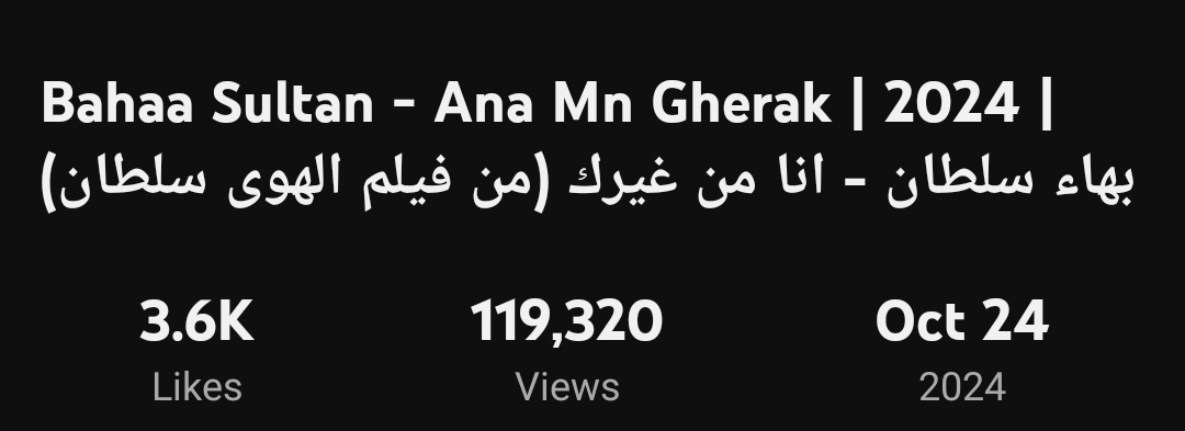 استطاعت أغنية أنا من غيرك للفنان بهاء سلطان أن تحصد مشاهدات جيدة وذلك بعد طرحها في 24 أكتوبر الماضي، حيث بلغت مشاهدات الأغنية 119,320 مشاهدة عبر يوتيوب .