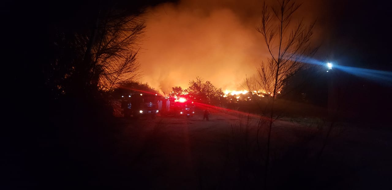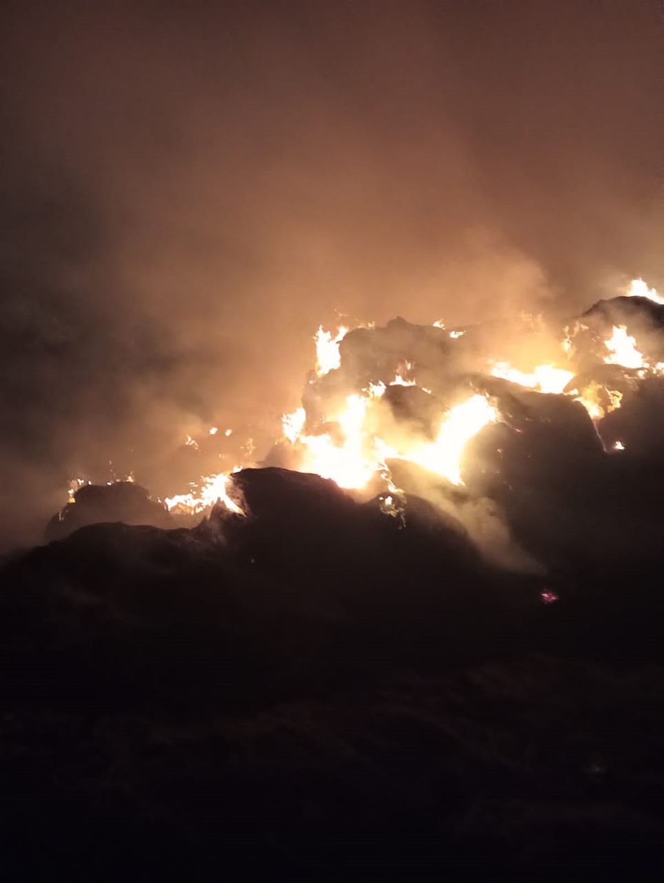 حريق هائل يلتهم جرن لتخزين قش الأرز في البحيرة
