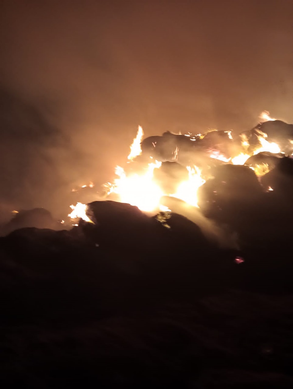 حريق هائل يلتهم جرن لتخزين قش الأرز في البحيرة (صور)