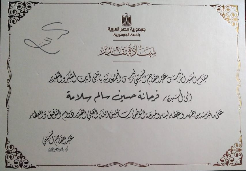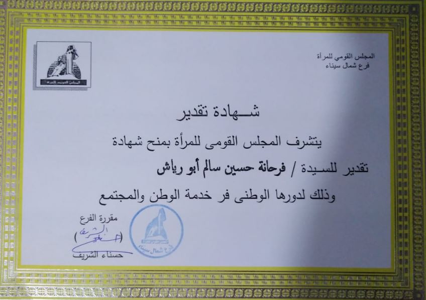 يتقدم المجلس القومى للمرأة بأسمى معانى الشكر والتقدير الى الرئيس عبد الفتاح السيسى رئيس الجمهورية لتوجيهه بإنشاء حي باسم المجاهدة فرحانة في سيناء تقديرا لمجهوداتها ، وذلك اليوم خلال احتفالية اتحاد القبائل العربية والعائلات المصرية "حكاية الأبطال" بمناسبة ذكرى نصر أكتوبر الـ 51 في ستاد العاصمة الإدارية الجديدة.