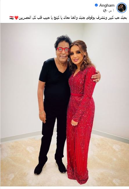ونشرت أنغام صورة تجمعها بمحمد منير وعلقت عليها " بحبك حب كبير وبتشرف بوقوفي جنبك والغنا معاك يا كينج يا حبيب قلب كل المصريين".