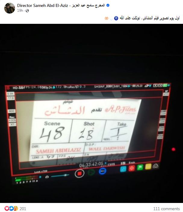 ونشر سامح عبد العزيز، صورة لـ كلاكيت العمل، عبر صفحته الرسمية على موقع التواصل الاجتماعي "فيسبوك" وعلق عليها: «أول يوم تصوير فيلم الدشاش. توكلت على الله».