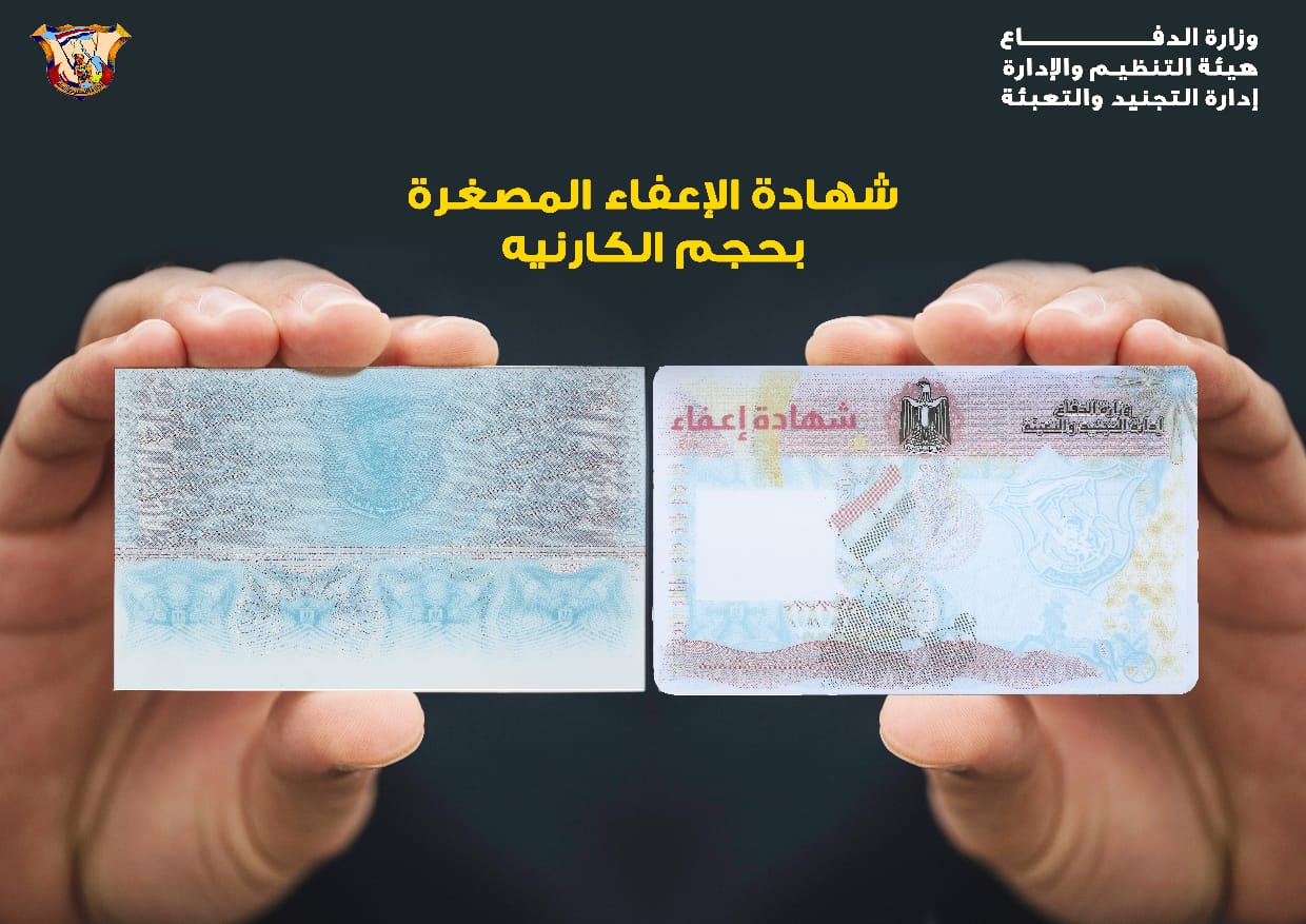 - الشهادة التي يتم استخراجها، هي شهادة الإعفاء من الخدمة العسكرية المصغرة (بحجم الكارنيه).