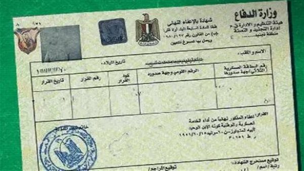 - حددت إدارة السجلات العسكرية، المستندات المطلوبة لتجديد شهادة الجيش، وجاءت كالتالي: