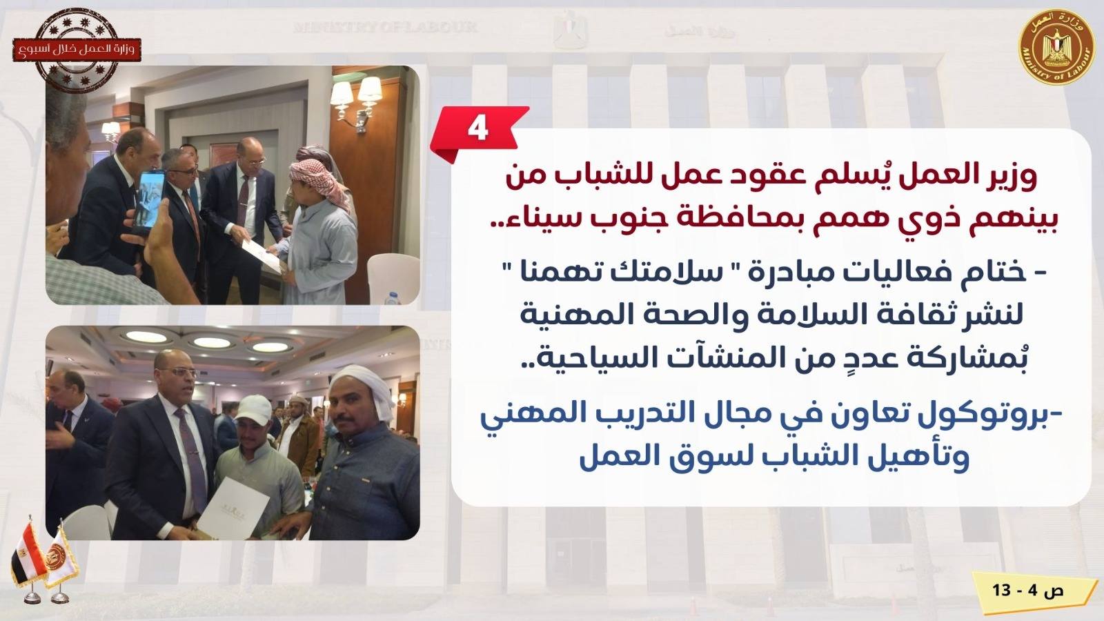 وزارة العمل في 7 أيام .. دعم جديد لعمالة غير منتظمة وتسليم عقود عمل في الداخل والخارج ولذوي الهمم