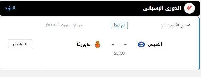ألافيش - ريال مايوركا - الساعة 10 مساءً - بي إن سبورتس 3HD.