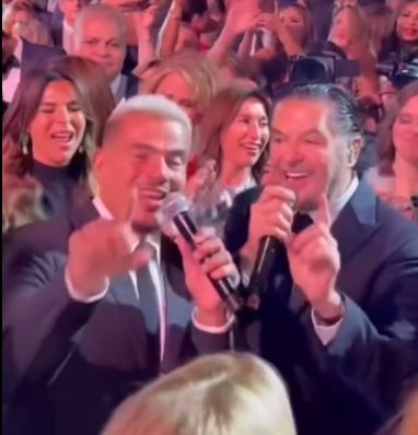 عمرو دياب وراغب علامة يغنيان في حفل زفاف ابنة هشام طلعت مصطفى (صور)