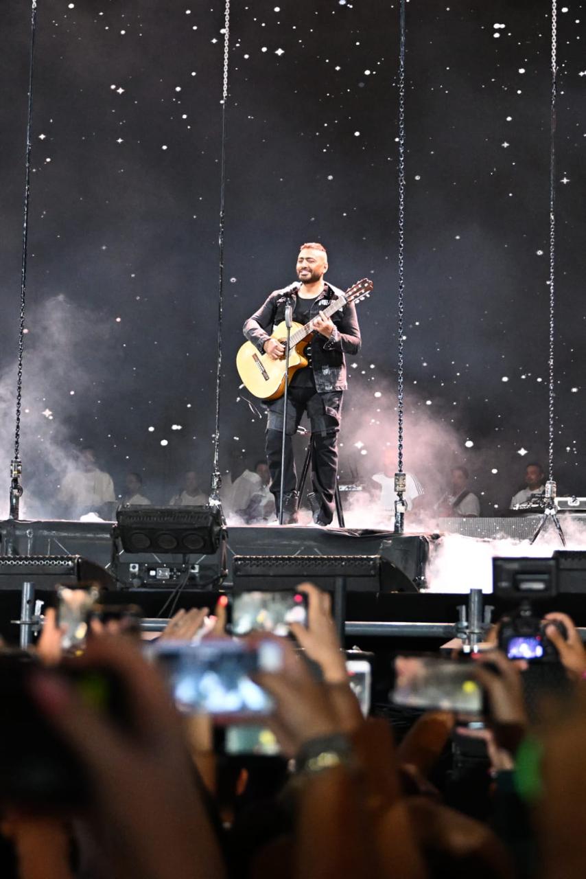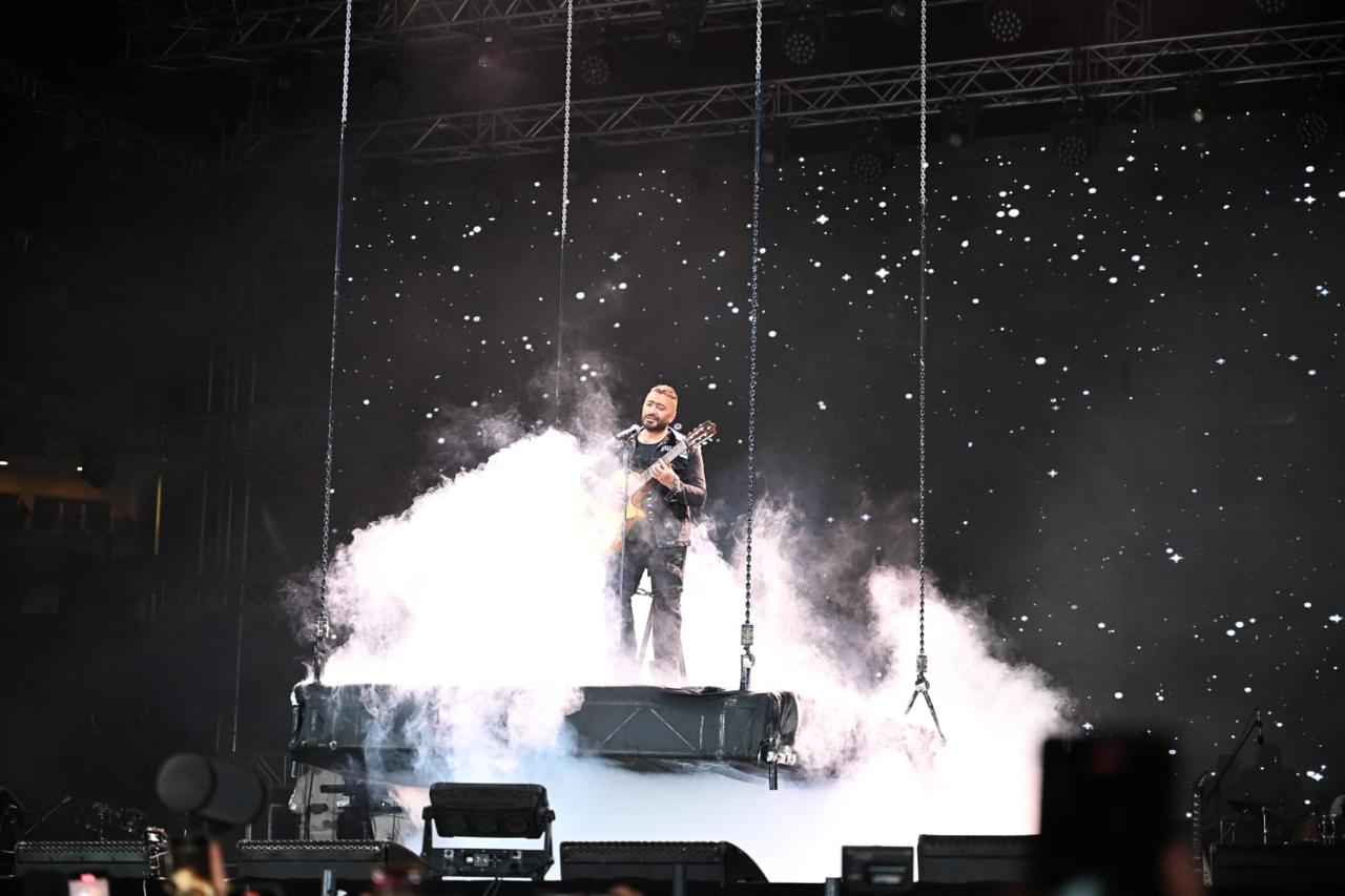 تامر حسني يواصل تألقه بحفل ضخم في الشروق.. أبهر الجمهور بالغناء طائرا علي السحب
