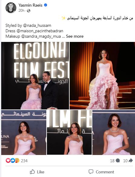 و نشرت ياسمين الصور، عبر حسابها الرسمي بموقع التواصل الاجتماعى "فيس بوك" بإطلالة جذابة ، حيث ارتدت فستانا منقوشا باللون الروز الفاتح، وفتحة ساق طويلة.
