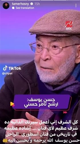 ونشر تامر فيديو خلال خاصية الاستوري عبر صفحته الرسمية "إنستجرام" للنجم الراحل لقاء سابق وهو يختاره لتجسيد سيرته الذاتية إذا تم تقديمها في عمل تليفزيوني أو سينمائي . وعلق " كل الشرف إني أعمل سيرتك الذاتية، ده شرف عظيم لأي فنان، إشادة عظيمة في تاريخي من فنان أسطوري الراحل حسن يوسف الله يرحمه ويحسن إليه".