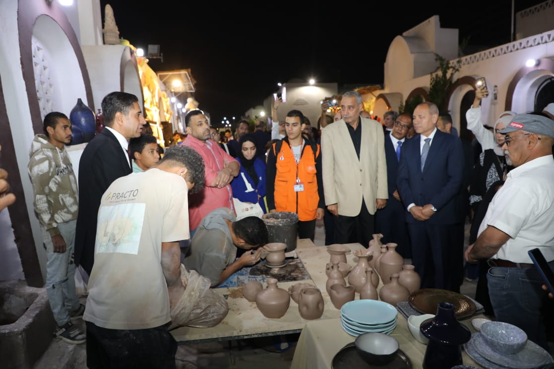 ورافق محافظ القاهرة ضيوف المنتدى في جولة لمشاهدة منتجات القريبة، كذلك طريقة عمل الفخار بالطريقة اليدوية، كما استمعوا لعدد من الفنانين حول طريقة عمل الافران .