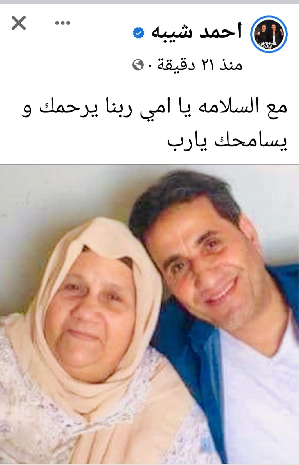 ومن خلال منشور مؤثر على حسابه الشخصي بموقع التواصل الاجتماعي فيسبوك، كتب شيبة فيه: “شكراً لكل اللي وقف جنبي يوم وفاة أمي الغالية.. شكراً لأهلي وأصدقائي وأحبائي، وللجميع سواء كان قريبًا أو غريبًا. كنتم لي سندًا ودعمًا حقيقيًا”.
