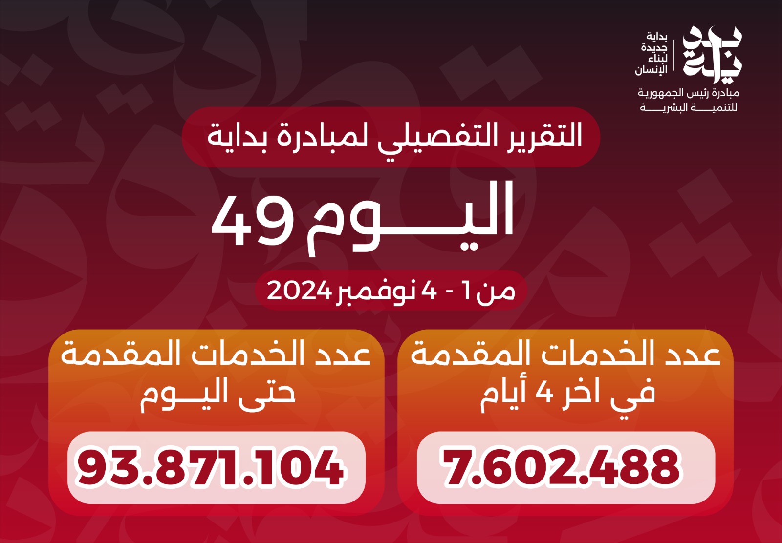 وخلال الأيام الأربع الماضية قدمت المبادرة 7 ملايين و602 ألف و488 خدمة، حيث استفاد من خدمات المبادرة في مجال تمكين وتدريب المرأة 52 ألفا و436 مستفيدة، وذلك عبر 201 خدمة ونشاط، كما تم توزيع 13.1 طن لحوم، وصلت لـ 13 ألفاً و102 أسرة، علاوة على 53 قافلة تنموية شاملة استفاد منها 25 ألفاً و678 مواطنا، و177 ندوة توعوية وعلمية وتثقيفية لجميع الفئات، بعدد مشاركين بلغ 3 آلاف و540 مشاركاً.