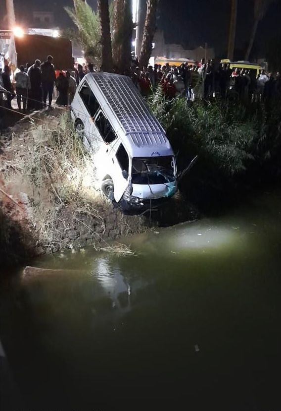 حادث انقلاب سيارة ميكروباص في ترعة بسوهاج
